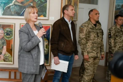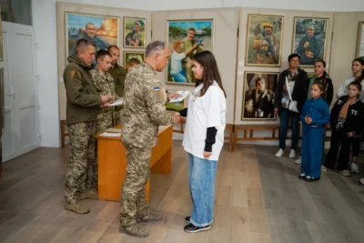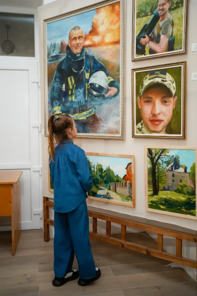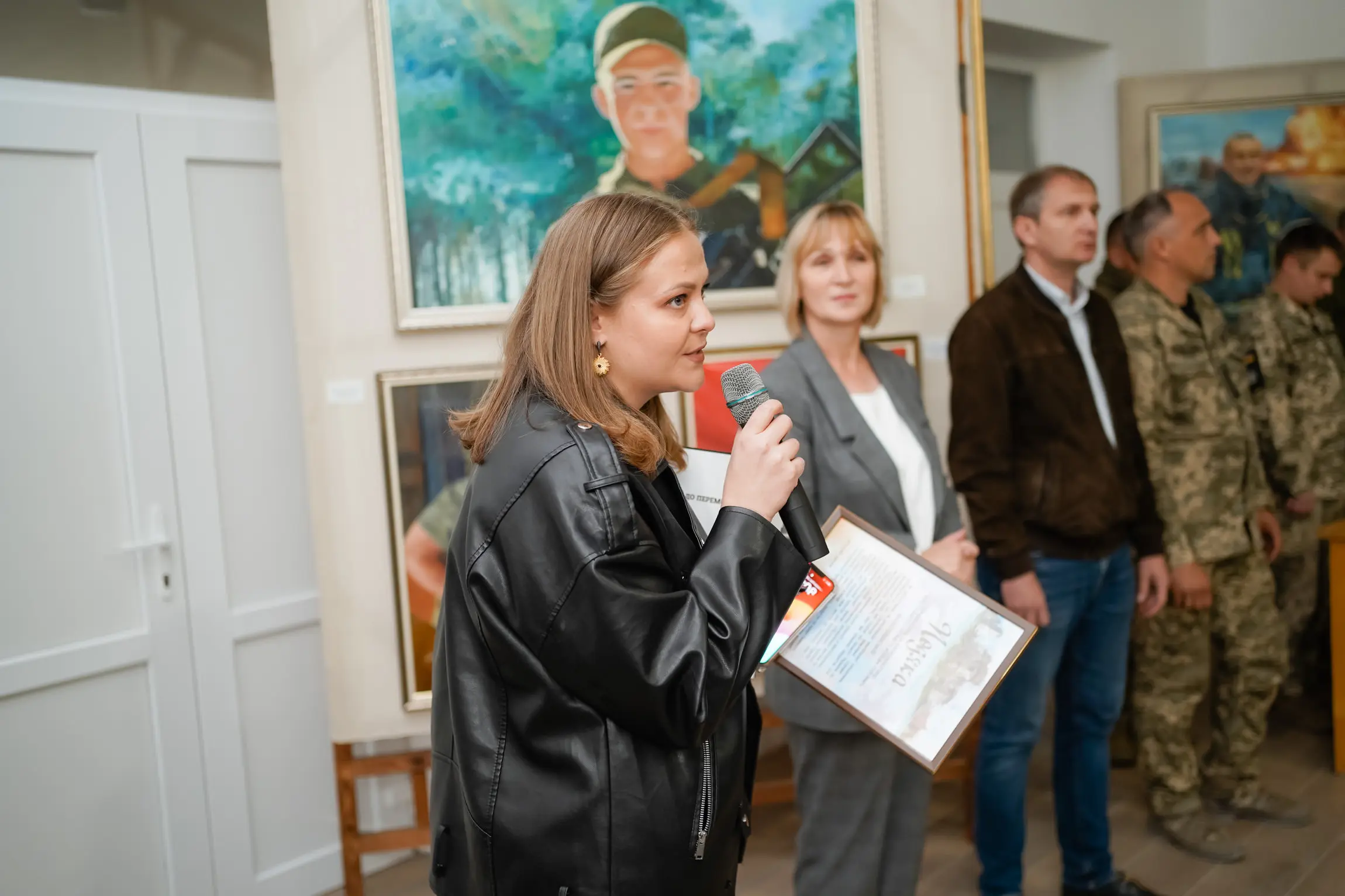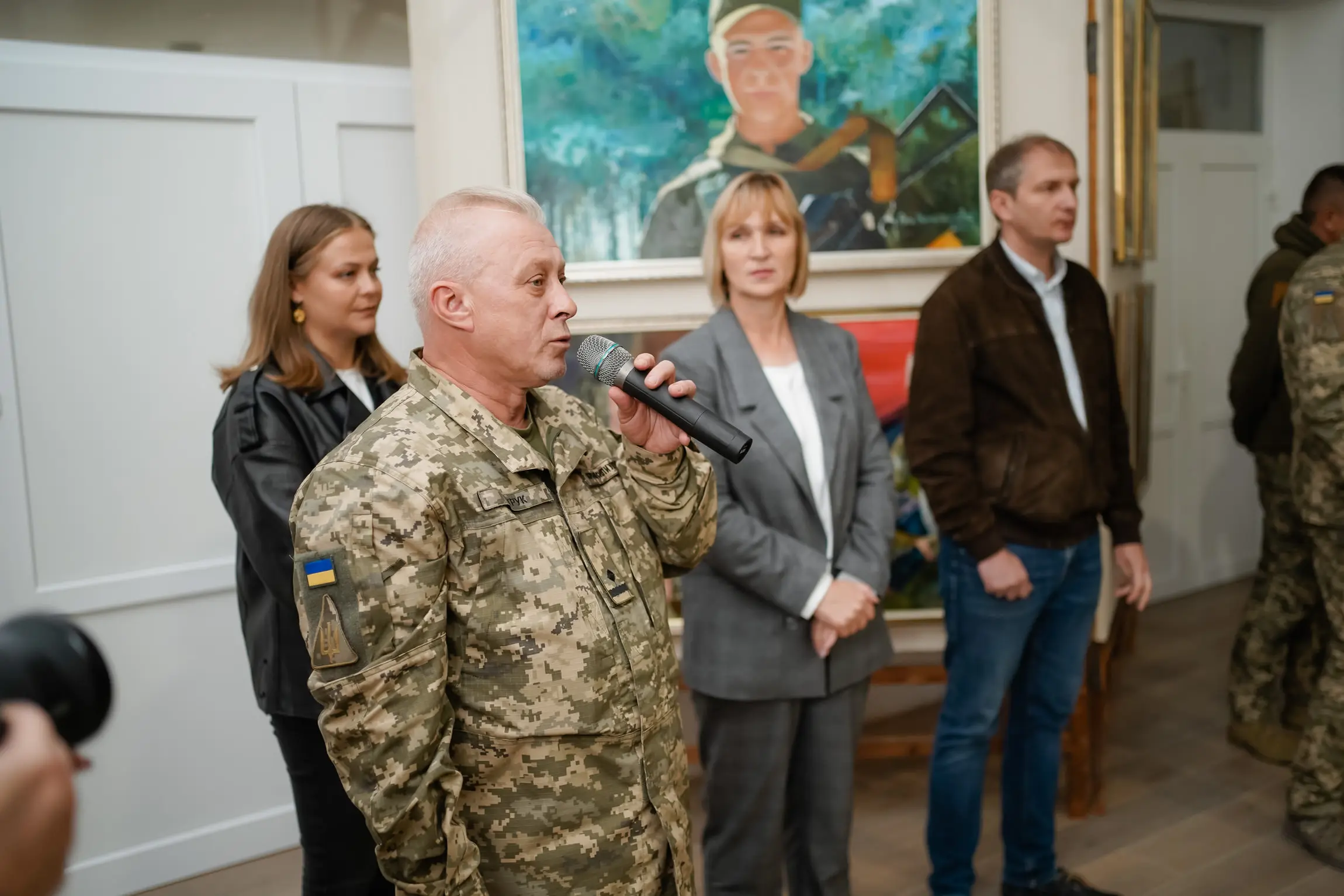Полковник Повітряних Сил ЗСУ, командир 7-ої бригади тактичної авіації імені Петра Франка Євген Булацик, поділився своїми емоціями від картин: “Ці люди на портретах — це мої побратими. Кожен портрет тут — це історія сміливості, відваги та любові до Батьківщини. Вони віддали найдорожче — свої життя за нашу країну.Дивлячись на ці обличчя, я бачу тих, з ким мав честь стояти пліч-о-пліч. І для мене велика гордість, що ці портрети створені молодим поколінням — вихованцями нашої мистецької школи. Це свідчить про те, що пам’ять про героїв житиме вічно, передаючись з покоління в покоління.” Після короткого слова Євген Булацик від імені Головнокомандувача ЗСУ Олександра Сирського вручив памʼятні відзнаки рідним загиблих захисників.
