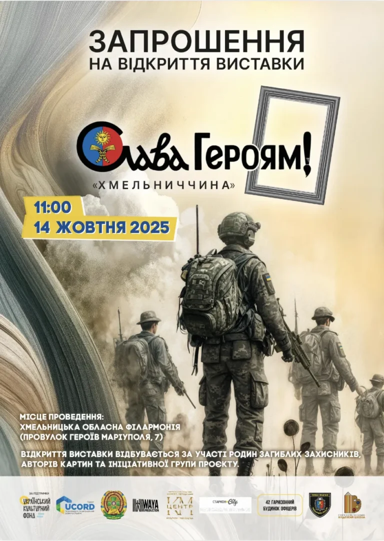 У Хмельницькій обласній філармонії відбудеться відкриття виставки «Слава Героям! Хмельниччина» — мистецького проєкту, присвяченого вшануванню пам’яті загиблих воїнів.