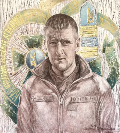 Я довго думала, кого обрати для свого малюнка. Адже на полотні хотілося зобразити не просто людину, а символ. Символ мужності, відваги, сили духу й тих цінностей, які ми сьогодні так болісно і водночас гордо відстоюємо. І саме тому моїм вибором став Буров Руслан Вікторович.